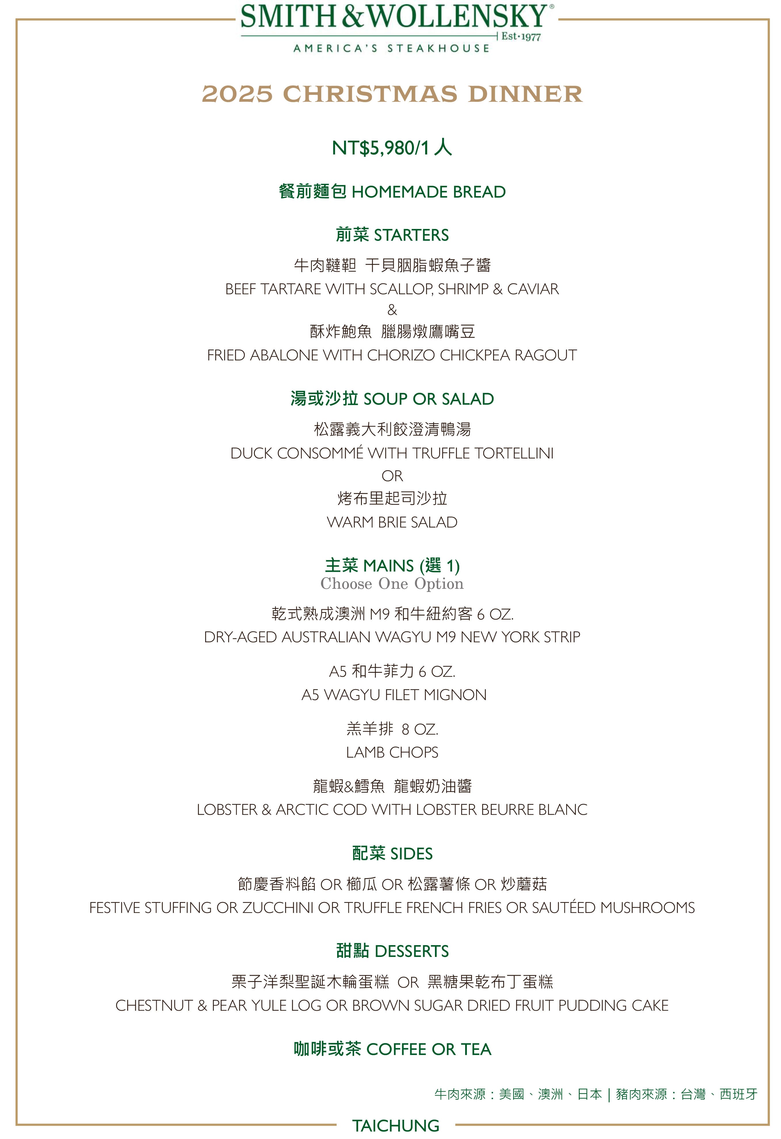 【2025 CHRISTMAS DINNER MENU-12/24&12/25】
